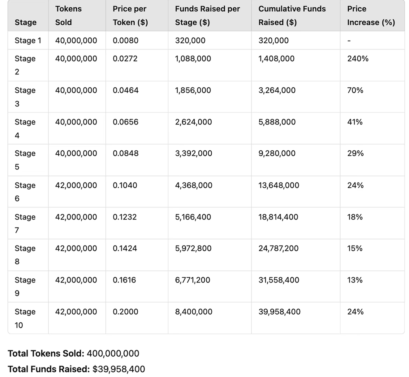 * Token Price End: **$0.20**